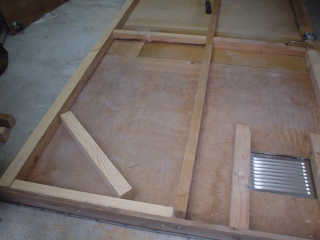 【2】ドアをはずして枠の木材を40×15mmから45×35mmに交換、また斜めに筋交いを入れることにしました。ドアの重量は増加しますがL字金具より上部です。