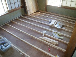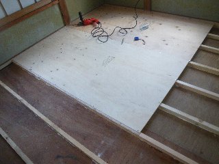 下地貼りまで完成、このあとフローリング材を敷きました。