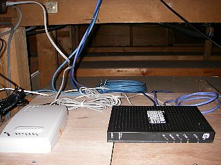 しばらくはADSLモデムを屋根裏に仮置きです。